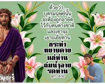 “ด้วยว่าบุตรมนุษย์นั้นจะต้องถูกอายัดไว้กับคนต่างชาติ และเขาจะเยาะเย้ยท่าน กระทำหยาบคายแก่ท่าน ถ่มน้ำลายรดท่าน”