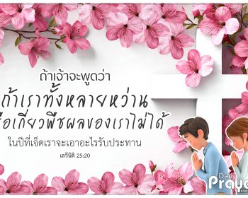 พระเจ้าทรงเลี้ยงดู เราเรียนรู้ความรักพระองค์ นำเราไปริมน้ำสงบ ฟื้นวิญญาณของเรา พระเจ้านำก้าวไป เราไม่เคยขัดสนอะไร นำเราไปในทางชอบธรรมเพื่อพระนามพระองค์ พระเจ้าจะนำเราไปแม้ทางจะยากเพียงใด ผ่านเขาเงาอันตรายเราไม่ต้องกลัวอะไรอยู่ในอ้อมแขนพระองค์ นี่คือพระสัญญาแห่งรักของพระองค์ที่ทรงสัญญาไว้กับทุกคนที่รักพระองค์ตลอดไปเป็นนิตย์ ซึ่งพระเจ้าทรงสำแดงให้เราทั้งหลายได้เห็นและทราบถึงการทรงนำ ทรงเลี้ยงดูชนชาติของพระองค์ในถิ่นทุรกันดารถึงสี่สิบปีด้วยมานาจากสวรรค์สถานของพระองค์มิเคยขาด ข้าแต่พระเจ้า พระผู้ทรงโปรดประทานการเลี้ยงดูให้มาถึงข้าพระองค์ทั้งหลายทั้งในฝ่ายกายและจิตวิญญาณตลอดมาและตลอดไป ขอพระองค์อย่าทรงให้ข้าพระองค์หลงไปจากความจริงนี้ ขอให้ข้าพระองค์ระลึกเสมอว่าแม้นกในอากาศ พวกมันไม่ได้หว่าน ไม่ได้เกี่ยว ไม่ได้รวบรวมไว้ในยุ้งฉาง แต่พระเจ้าพระบิดาผู้ทรงสถิตในสวรรค์ทรงเลี้ยงพวกมันไว้ ซึ่งข้าพระองค์ทั้งหลายก็ประเสริฐกว่าพวกมันในสายพระเนตรของพระองค์ เพื่อข้าพระองค์จะวางใจในพระองค์ในสิ่งที่ยังมาไม่ถึงว่า พระองค์จะทรงนำข้าพระองค์ให้ผ่านพ้นไปได้เสมอด้วยการเลี้ยงดูของพระองค์ โดยผ่านพระนามขององค์พระเยซูคริสต์เจ้า อาเมน ถ้าเจ้าจะพูดว่า ถ้าเราทั้งหลายหว่านหรือเกี่ยวพืชผลของเราไม่ได้ ในปีที่เจ็ดเราจะเอาอะไรรับประทาน – เลวีนิติ…