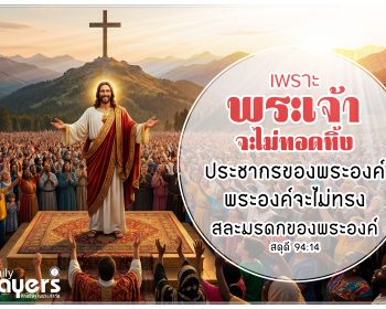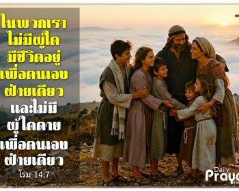 มนุษย์ถูกสร้างตาม “พระฉายาของพระเจ้า” และพระเจ้าไม่ทรงให้เขาดำรงอยู่อย่างโดดเดี่ยว พระองค์ทรงตรัสว่า “ไม่ควรที่ชายผู้นี้จะอยู่คนเดียว” พระเจ้าจึงสร้างคู่พระพรขึ้นมา เพื่อให้มนุษย์เติมเต็มซึ่งกันและกัน นี่เริ่มจากจุดเล็กที่สุดคือ ครอบครัว แล้วขยายไปสู่ชุมชน สังคม และประเทศ เพราะการอยู่แต่ลำพังมักนำไปสู่ภาวะซึมเศร้า มนุษย์ไม่ได้ถูกสร้างมาเพื่อหาความสุขใส่ตัวเพียงอย่างเดียว แต่มีหน้าที่ในการสร้างสรรค์และดูแลสังคมที่ตนเองอยู่ด้วย ชีวิตเราจะสมบูรณ์แบบที่สุดก็ต่อเมื่อเราได้รัก ได้ร่วมรับใช้กันและกัน ได้มีส่วนสัมพันธ์เชื่อมโยงกับผู้คนรอบข้างด้วยเสมอ ข้าแต่พระบิดาเจ้า ผู้ทรงสถิตในสวรรค์ ลูกขอบพระคุณพระองค์สำหรับความรักอันมั่นคงและพระเมตตาที่มีต่อชีวิตของลูก ในทุกๆ วันขอพระองค์ทรงโปรดทรงนำลูกให้มีความสัมพันธ์ที่สนิทสนมกับพระองค์มากยิ่งขึ้น ให้จิตใจของลูกหิวกระหายพระคำและสันติสุขที่มาจากพระองค์ ขอให้พระองค์ทรงเป็นที่หนึ่งในชีวิต เป็นศูนย์กลางของทุกความคิดและการตัดสินใจ เพื่อที่ลูกจะได้ดำเนินชีวิตตามน้ำพระทัยของพระองค์ ขอพระเจ้าทรงปกป้องและอวยพรความสัมพันธ์ของลูกในครอบครัว ขอให้ความรักของพระองค์เป็นกาวประสานให้เรามีความเข้าใจกัน การให้อภัย…