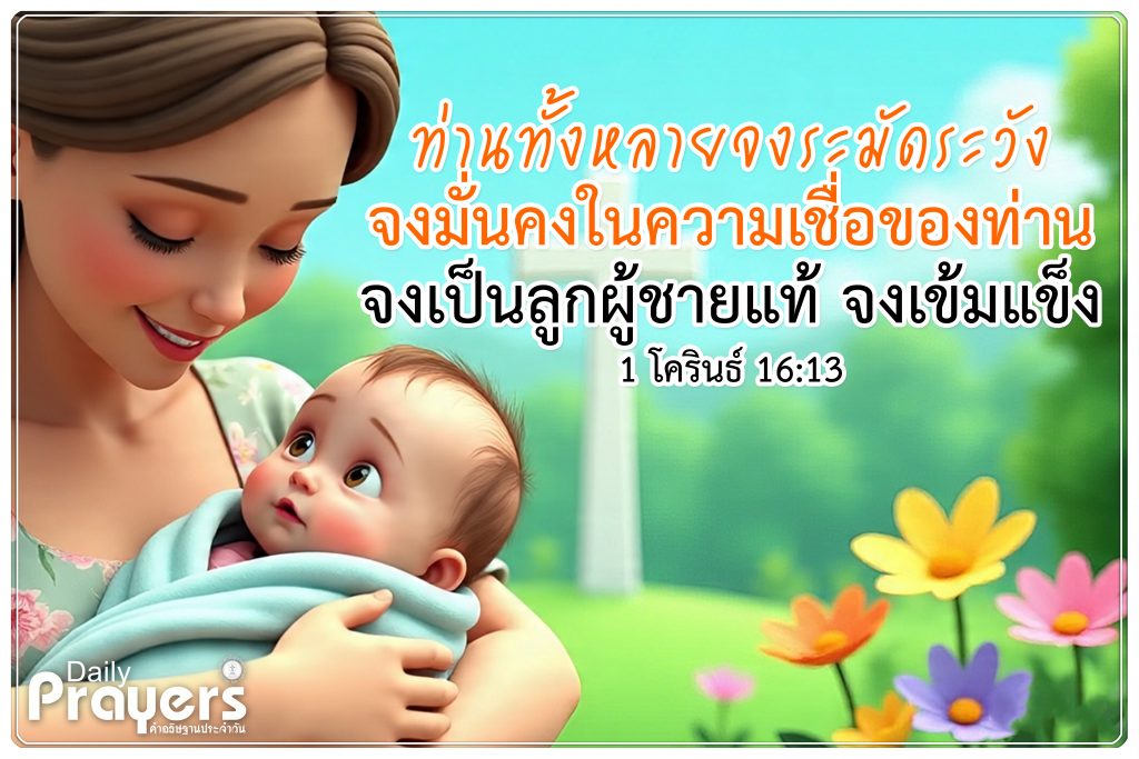 ท่านทั้งหลายจงระมัดระวัง จงมั่นคงในความเชื่อของท่าน จงเป็นลูกผู้ชายแท้ จงเข้มแข็ง – 1 โครินธ์ 16:13
