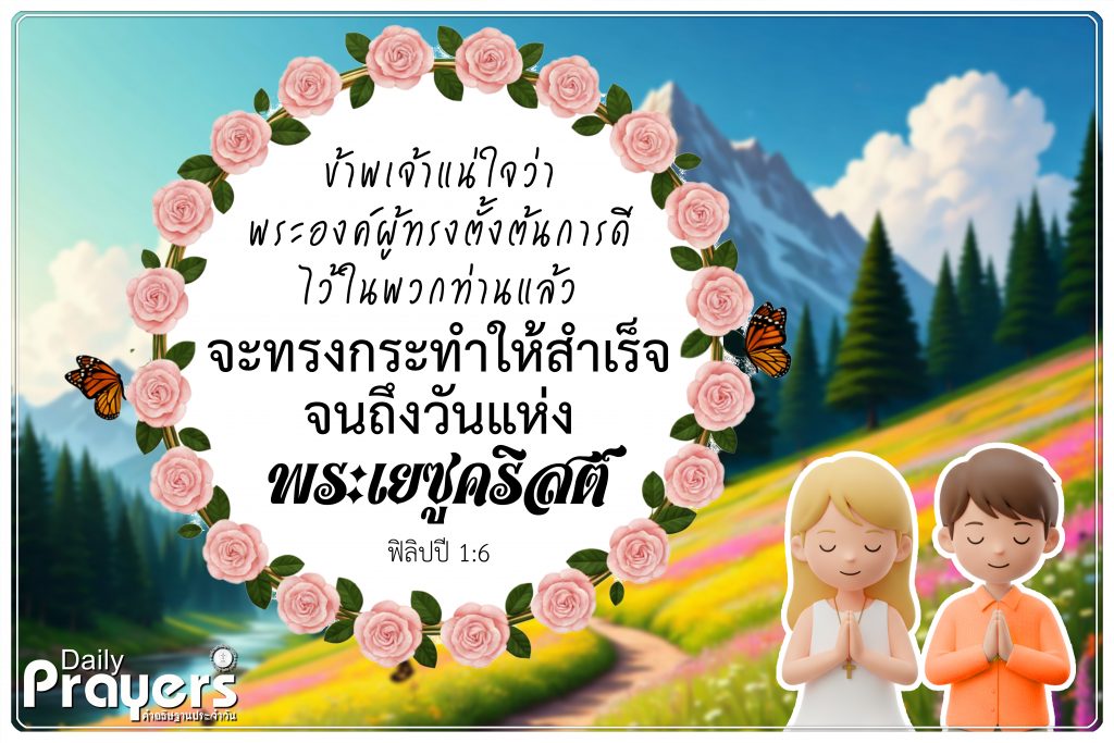 ข้าพเจ้าแน่ใจว่าพระองค์ผู้ทรงตั้งต้นการดีไว้ในพวกท่านแล้ว จะทรงกระทำให้สำเร็จจนถึงวันแห่งพระเยซูคริสต์ – ฟิลิปปี 1:6