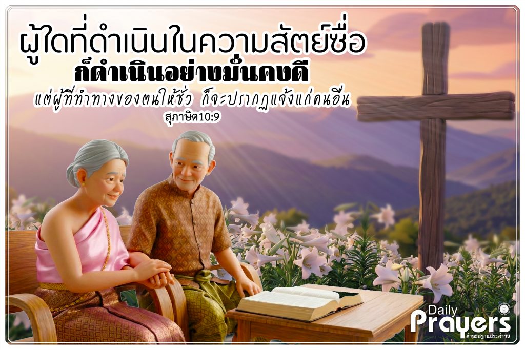 ผู้ใดที่ดำเนินในความสัตย์ซื่อก็ดำเนินอย่างมั่นคงดี แต่ผู้ที่ทำทางของตนให้ชั่วก็จะปรากฏแจ้งแก่คนอื่น – สุภาษิต10:9