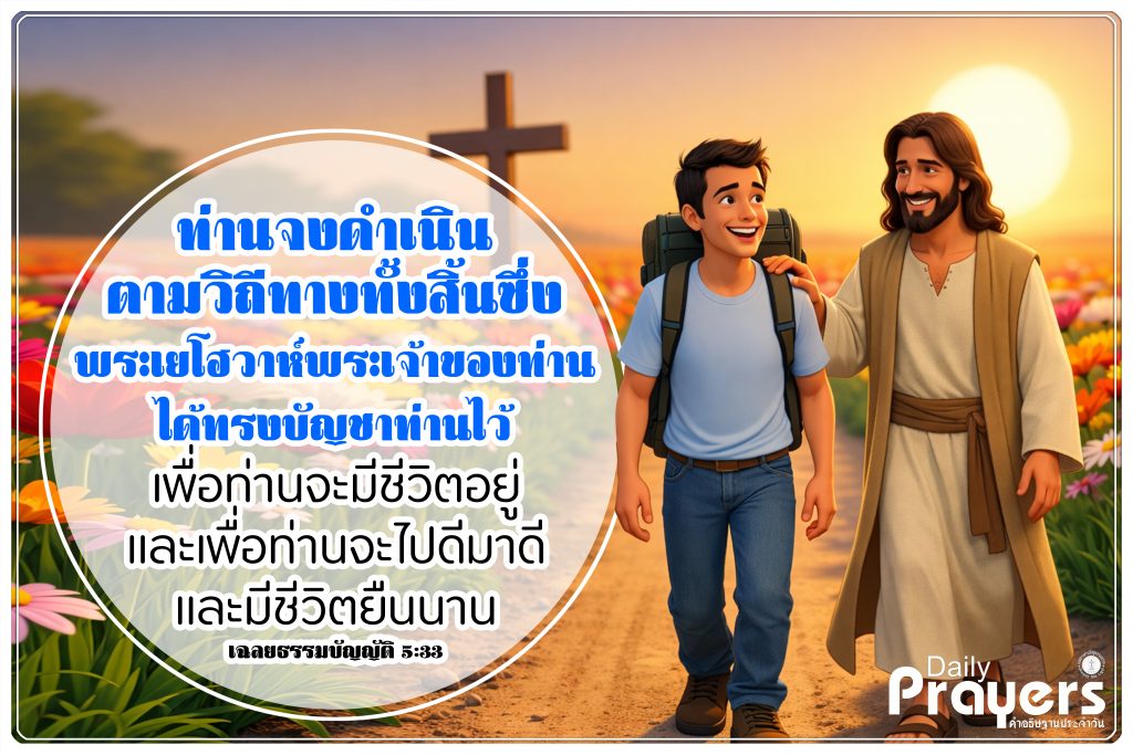 ท่านจงดำเนินตามวิถีทางทั้งสิ้นซึ่งพระเยโฮวาห์…เพื่อท่านจะมีชีวิตอยู่และเพื่อท่านจะไปดีมาดี และมีชีวิตยืนนาน… – เฉลยธรรมบัญญัติ 5:33