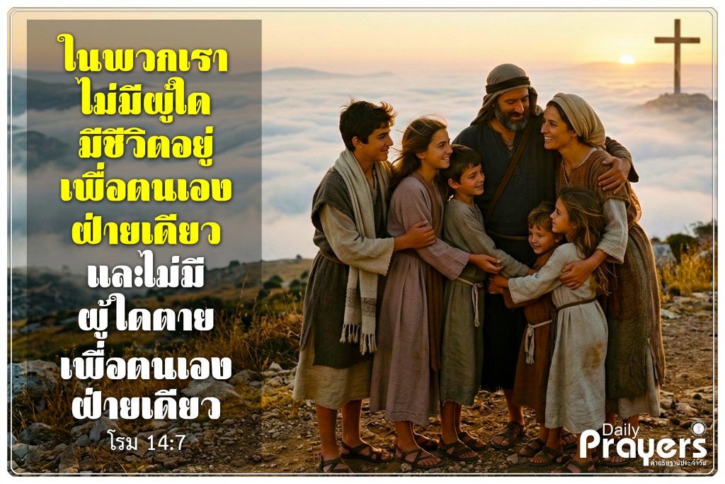 ในพวกเราไม่มีผู้ใดมีชีวิตอยู่เพื่อตนเองฝ่ายเดียว และไม่มีผู้ใดตายเพื่อตนเองฝ่ายเดียว – โรม 14:7