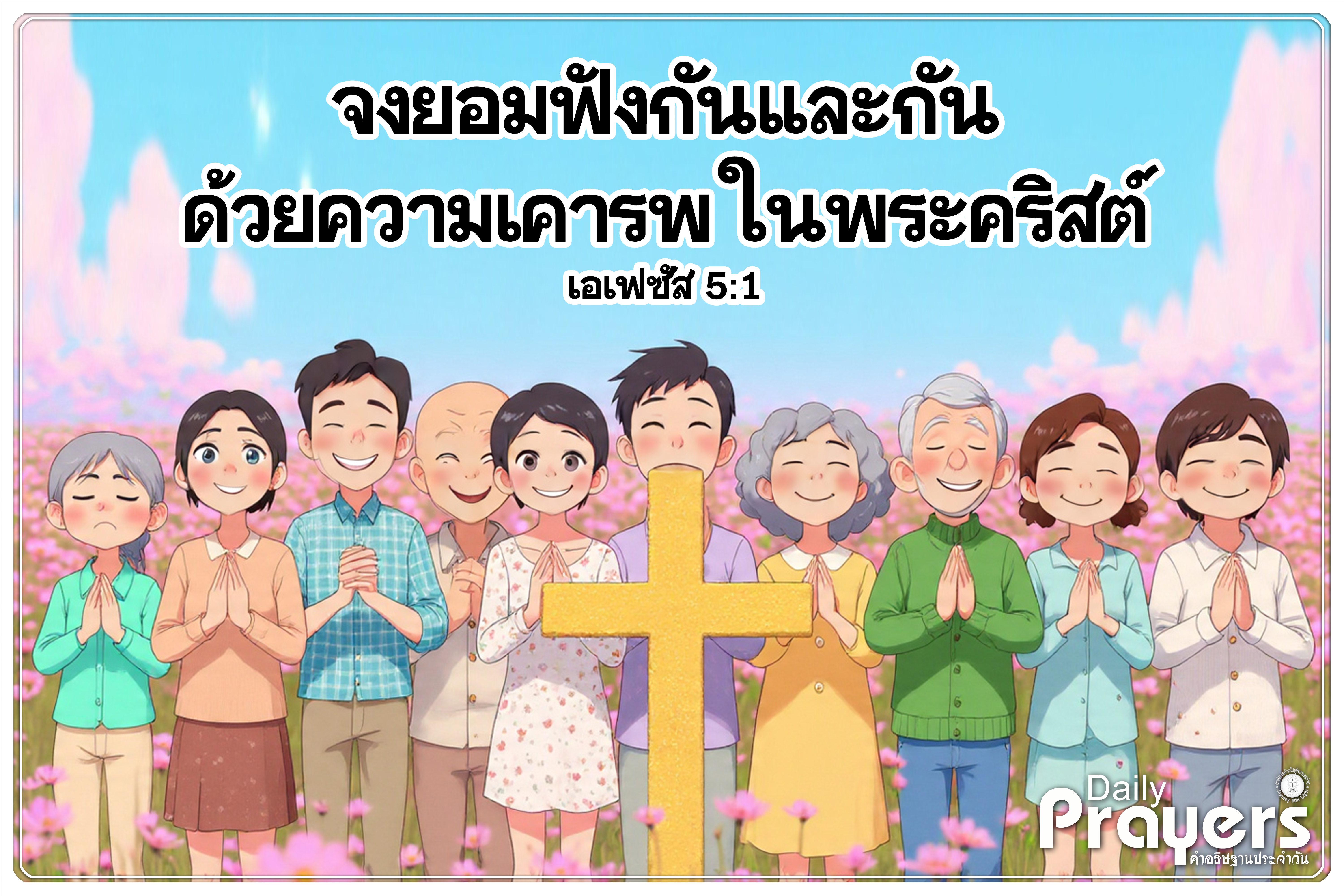 พระเจ้าทรงเป็นต้นแบบแห่งการยอม เพราะพระองค์ทรงยอมสละพระบุตรของพระองค์เพื่อช่วยมนุษย์ทุกคนให้พ้นจากโทษของความผิดบาปของเขา แล้วให้พระบุตรเป็นผู้รับโทษแห่งความตายนั้นตกลงที่พระบุตรของพระองค์ ซึ่งพระเยซูคริสต์พระบุตรของพระเจ้า พระองค์ได้ทรงยึดมั่นในการดำเนินตามพระทัยของพระบิดา พระองค์จึงทรงยอมเสด็จเข้ามาในโลกเพื่อทรงกระทำตามพระประสงค์ของพระบิดาทุกประการ พระเยซูพระบุตรจึงทรงยอมสละพระชนม์ชีพของพระองค์เพื่อไถ่มนุษย์ผู้เป็นคนบาปให้พ้นโทษบาปและรับการคืนดีกับพระเจ้าพระบิดา ซึ่งพระองค์ได้ทรงมีพระทัยที่จะเห็นมนุษย์มีจิตใจแห่งการยอมซึ่งเป็นจิตใจที่ถ่อมลงภายใต้พระนามของพระองค์ เพื่อรับการทรงนำจากพระองค์โดยพระวจนะและพระวิญญาณบริสุทธิ์เพื่อความสงบสุข สันติสุข และสันติภาพในชีวิต ในสังคม และในโลกใบนี้ สาธุการแด่พระเจ้าผู้สูงสุด พระองค์ทรงเป็นพระเจ้าผู้ทรงยิ่งใหญ่สูงสุด
