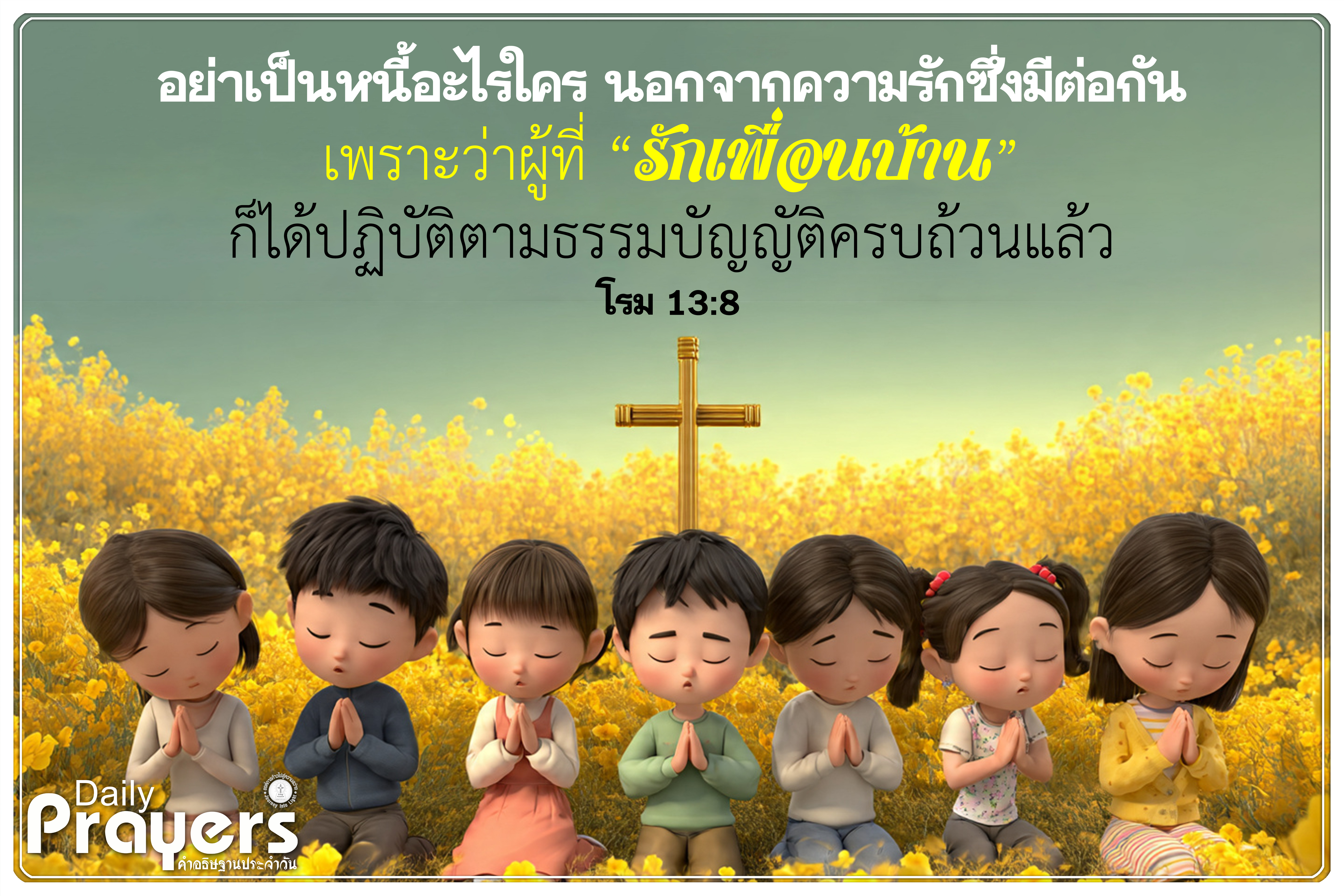 พระเจ้าไม่ทรงเป็นหนี้หรือติดหนี้อะไรต่อมนุษย์หรือผู้ใดทั้งสิ้น เพราะทั้งสิ้นเป็นของพระองค์ แต่สำหรับมนุษย์แล้วเป็นหนี้ ก็ต้องชดใช้ เมื่อไม่ชดใช้ปัญหาอื่นๆ ก็จะตามมาและทำความยุ่งยากให้เกิดขึ้นทั้งผู้เป็นหนี้และเจ้าหนี้ ทางที่ดีไม่เป็นหนี้จะดีกว่า แต่พระวจนะของพระเจ้ายังอนุญาตให้เป็นหนี้ได้หนึ่งอย่าง นั่นก็คือ หนี้แห่งความรัก พระเจ้าทรงปรารถนาให้ผู้ที่เชื่อวางใจในพระองค์เป็นหนี้ความรักที่มีต่อกันและกันมากขึ้น รวมไปถึงหนี้ความรักที่มีไปถึงเพื่อนบ้านด้วย หนี้ความรักที่เราได้มีหรือที่เรามีให้แก่ผู้อื่นนั้น พระเจ้ามิได้ทรงบอกให้เราทวงคืนเพราะความรักเป็นของพระเจ้า พระองค์ทรงเป็นเจ้าของทรงให้เรามาฟรีๆ